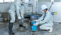 フライアッシュ・高炉スラグ細骨材を混合することにより、流動性を確保。従来の製品に比べひび割れ(乾燥吸収率)の低減を実現しました。