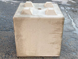 工事現場で余ってしまった生コンクリートを再利用するため、型枠に流し込んでブロックの形状にしたものです。残コンブロックは、「トウフ」「ヨウカン」などとも呼ばれ、残コン・戻りコンの処理方法としてかつてより採用されてきました。